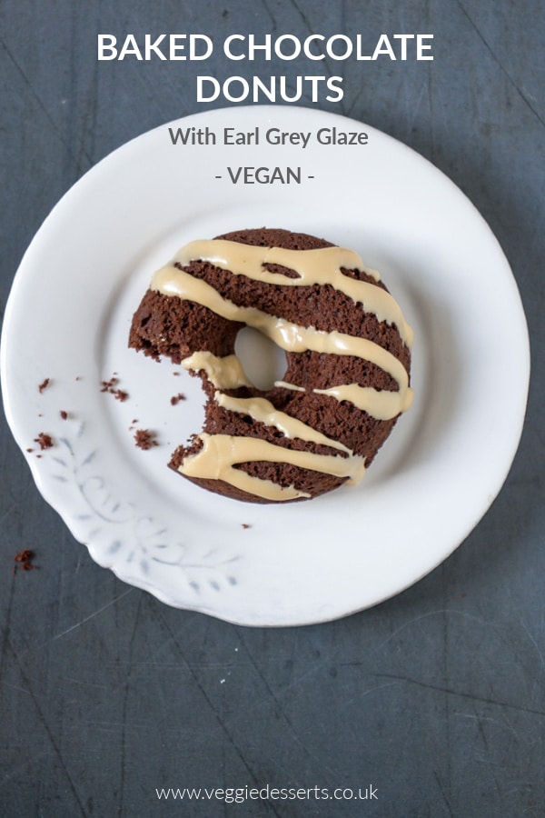 The egg-free and dairy-free vegan doughnuts have a springy texture and rich chocolate flavour. They're then topped with a simple Earl Grey tea infused glaze for an extra burst of flavour.
