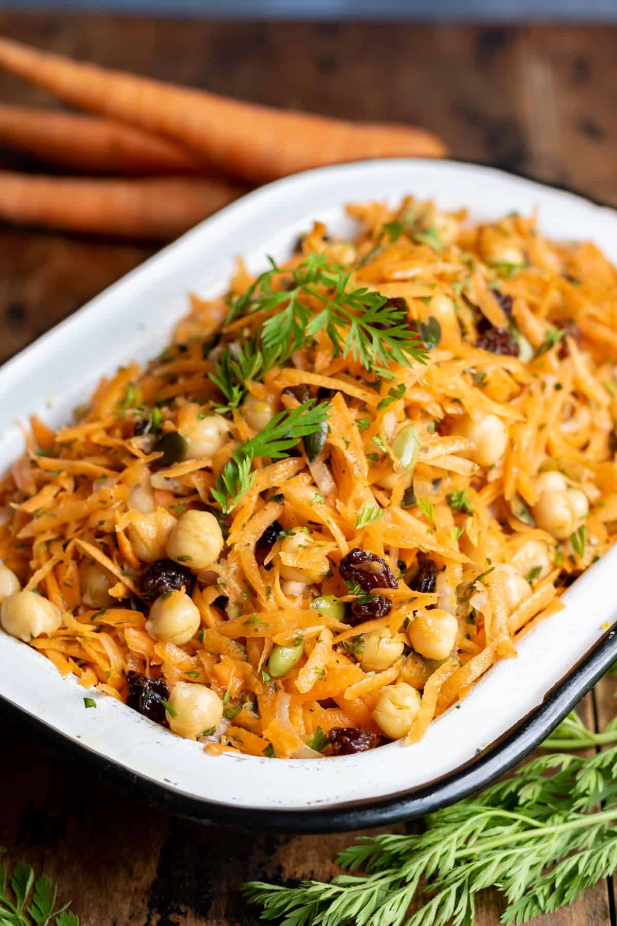 - Raisins - Gives the salad a pop of sweetness that pairs well with carrots.
