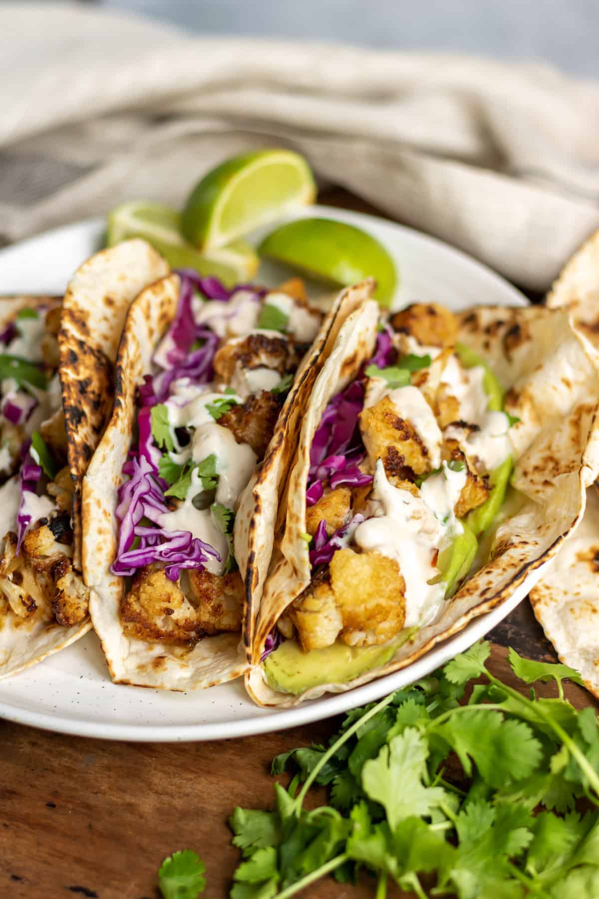 These cauliflower tacos are then topped with a homemade chipotle lime yogurt sauce that's made with simple ingredients!