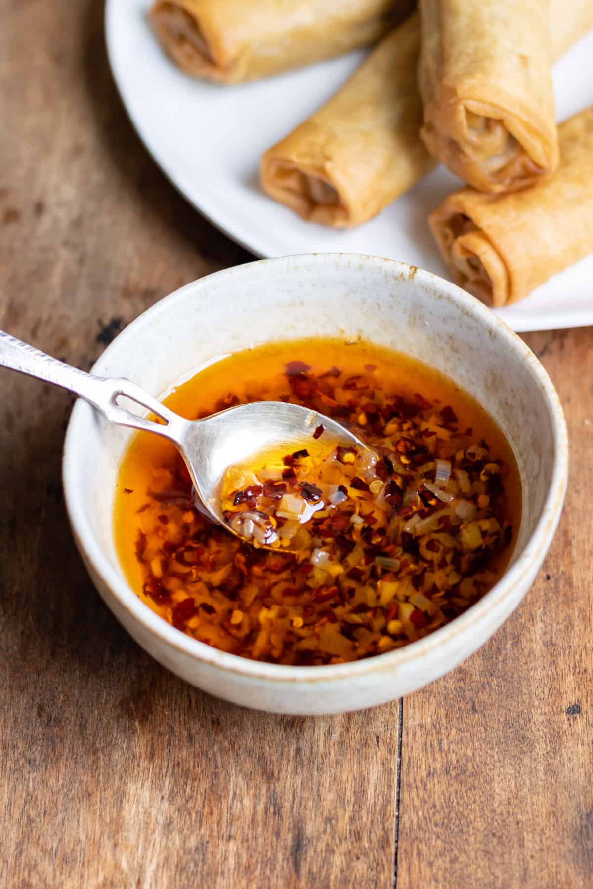 Yum, yum, yummm! This chili garlic oil is so delicious and so easy to make. I love dipping eggrolls into this or even drizzling it over some stir fry.