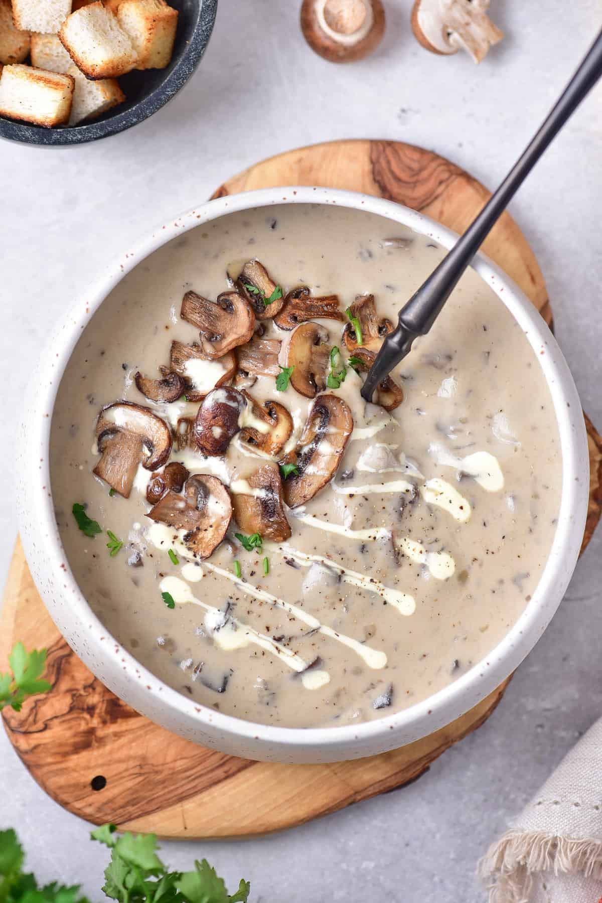 Enjoy the rich, homemade goodness of this tasty Creamy Mushroom Soup recipe! It's a breeze to whip up and is bursting with deep, earthy flavors. Say goodbye to canned versions and enjoy this smooth, comforting soup that's ready in no time.