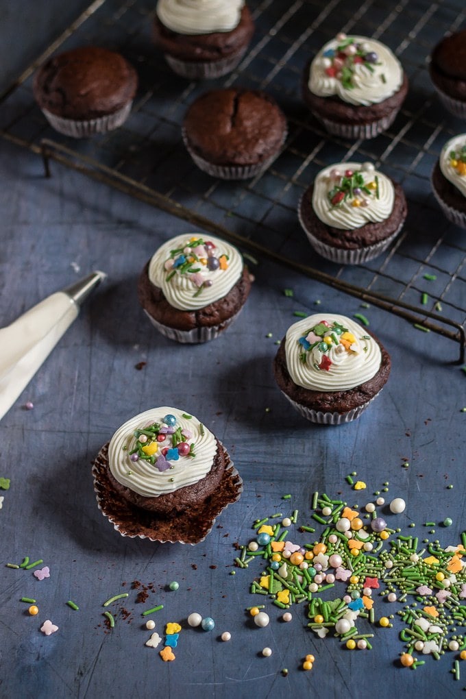 I've topped them with vegan vanilla frosting and pretty vegan sprinkles!