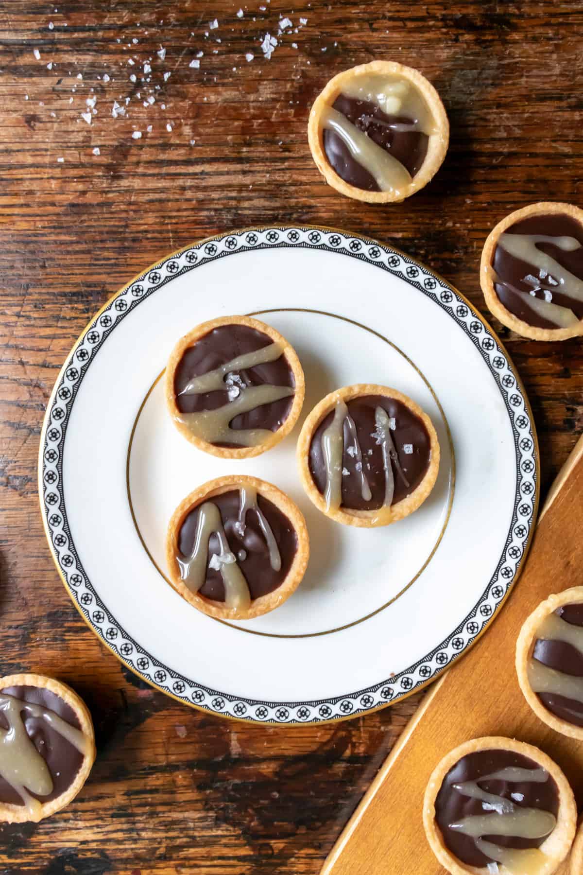 Drizzle the tarts with salted caramel sauce, then sprinkle with a little flaky sea salt.