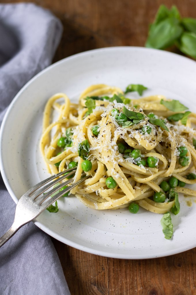 - A little pesto adds a great flavour, but simple green pea pasta is still really tasty without it.