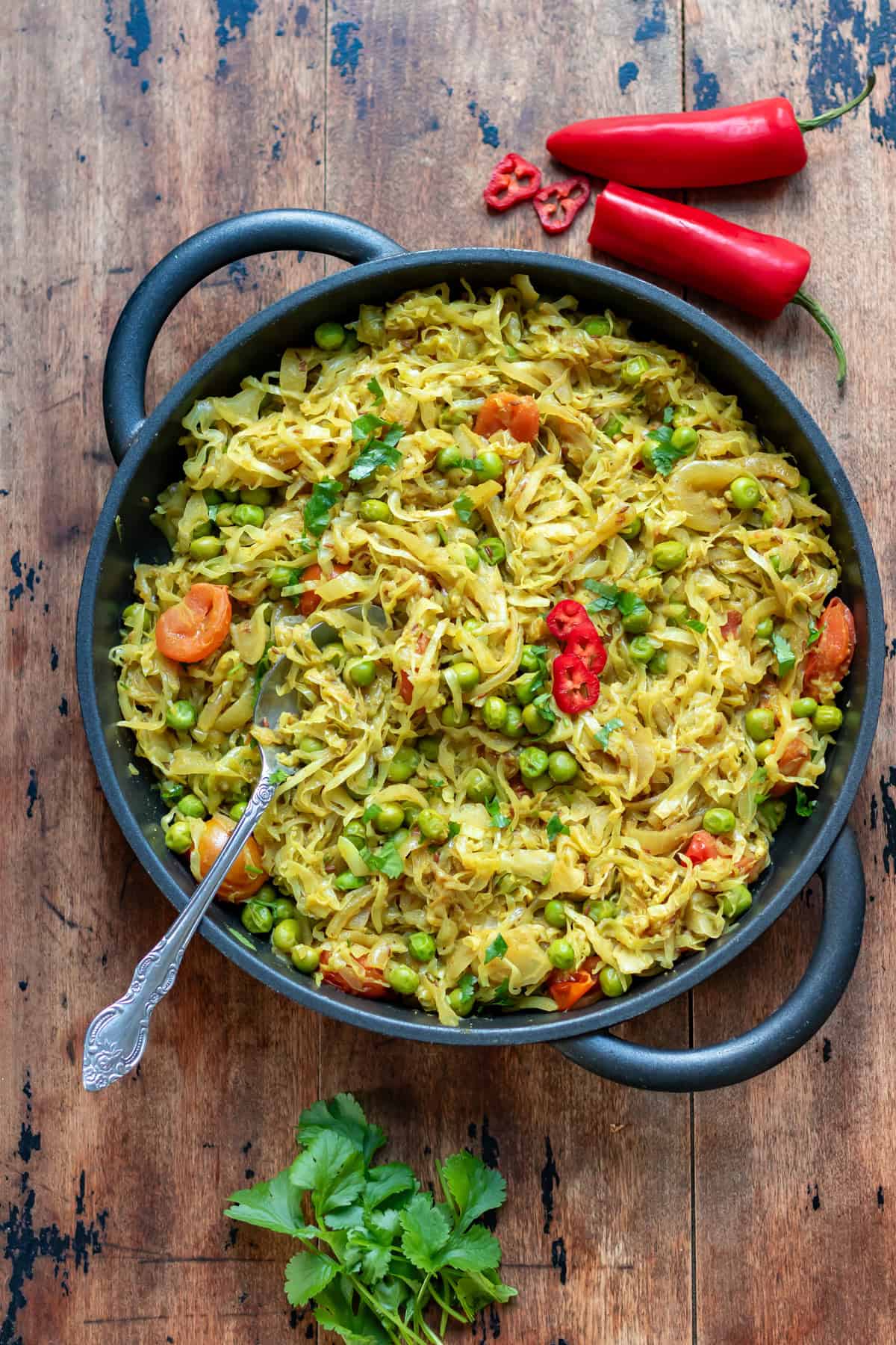 I love how this dish manages to be both comforting and light at the same time. The cabbage cooks down beautifully, and the peas provide a pop of sweetness that balances the warmth of the spices.