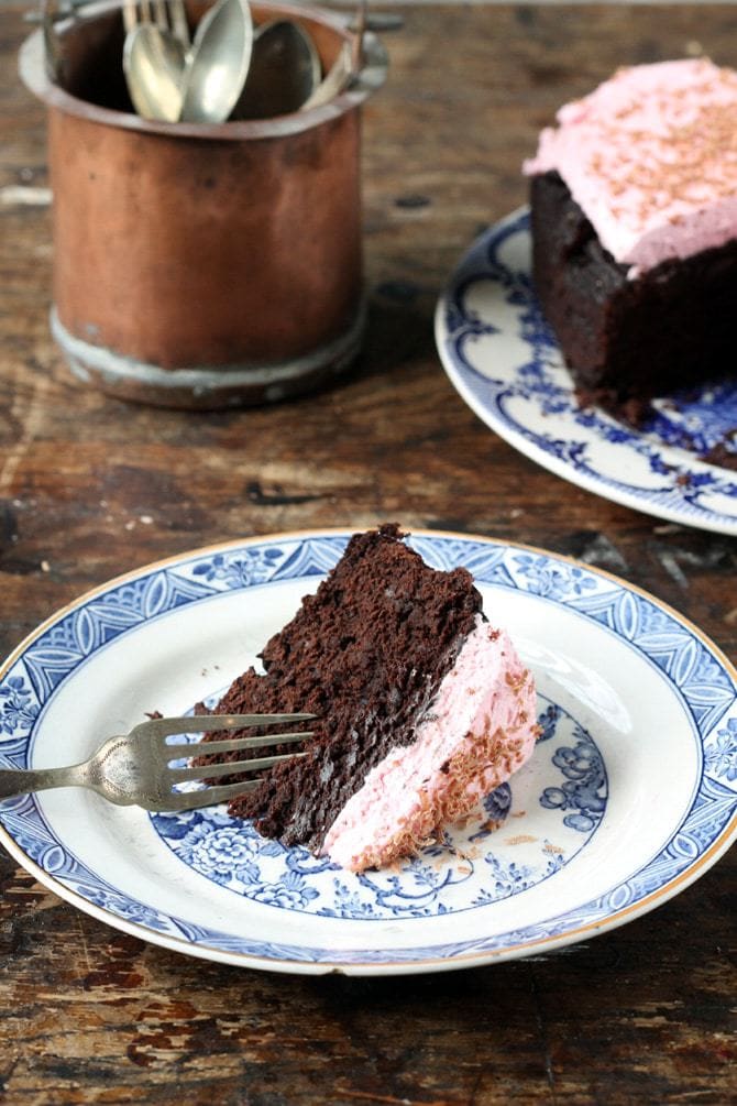 The very subtle flavour of the beet juice tastes lovely with the vanilla and the lightness of the cream lifts the intense cocoa flavour of the cake.
