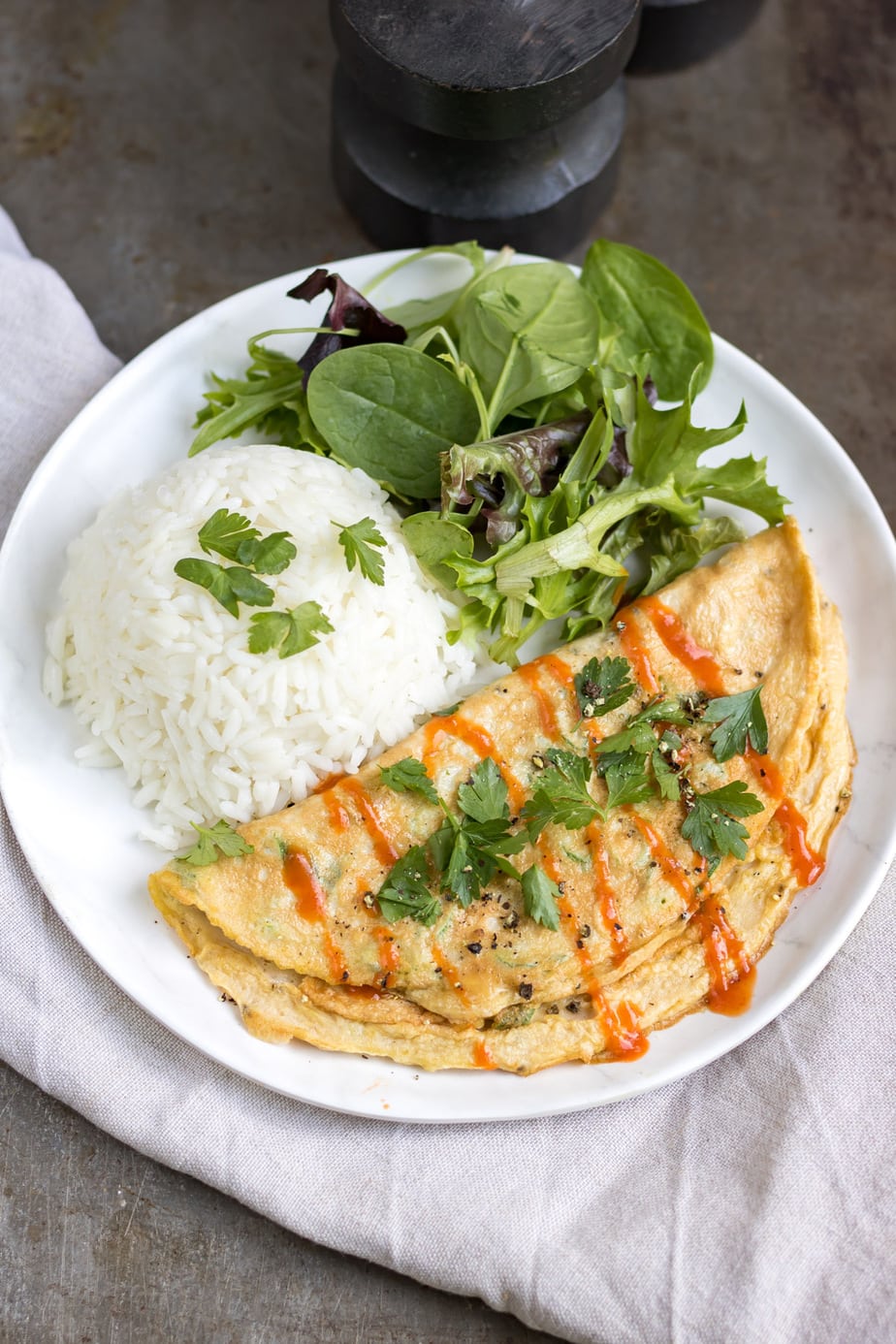 Sriracha hot sauce - Because the classic Thai condiment is perfect on this Kai Jeow Omelette!