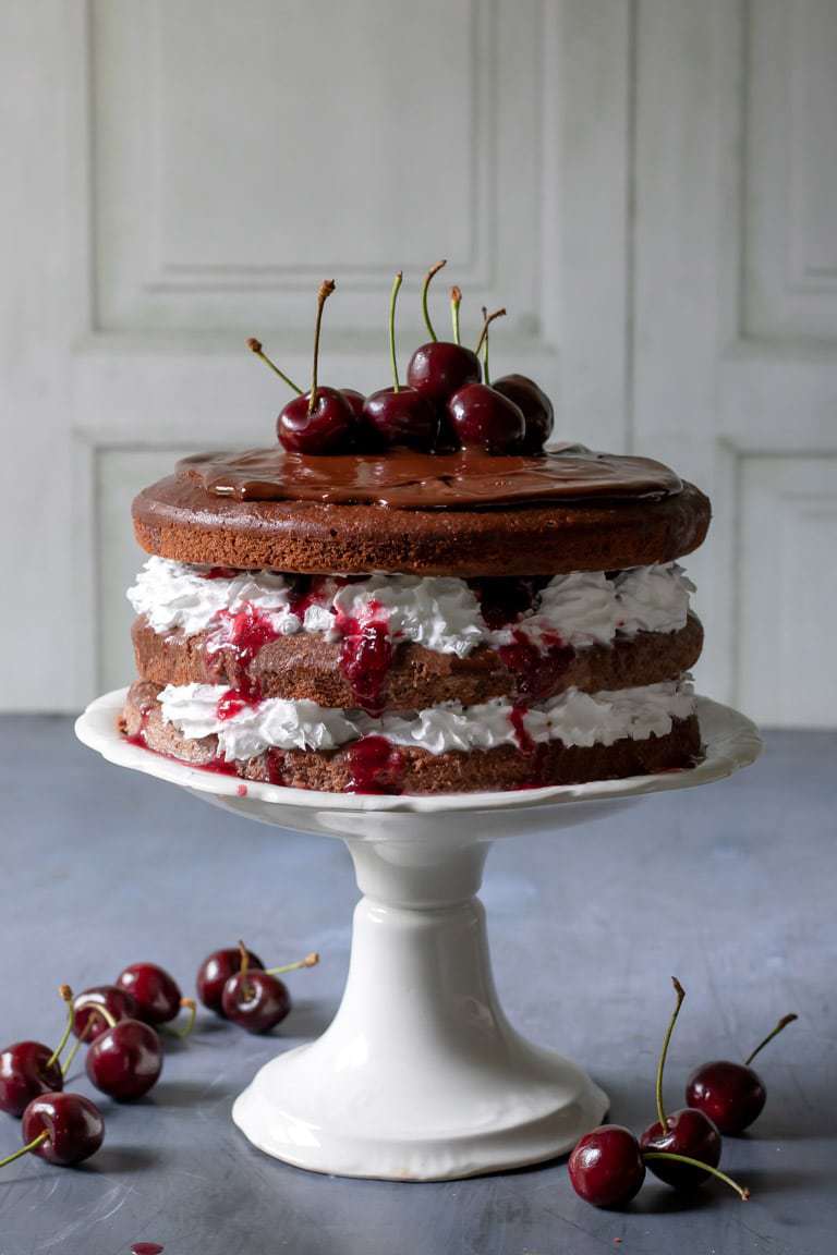 Oh my gosh this looks absolutely delicious! Black Forest cakes is one of my favourites too, I love the cherry, chocolate and cream combination. With all those layers and glistening cherries this one looks like a real showstopper!