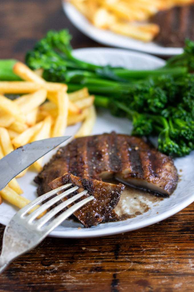 When they cook, the mushrooms release their juices, which mingle with the marinade ingredients creating a lovely jus/sauce with concentrated steakhouse flavours.