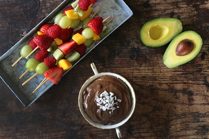 Chocolate Avocado Dip with Fresh Fruit Skewers
